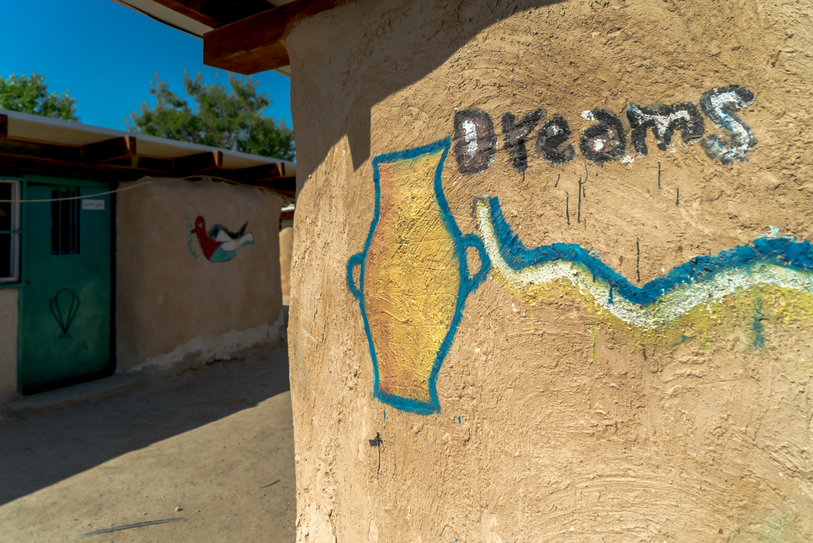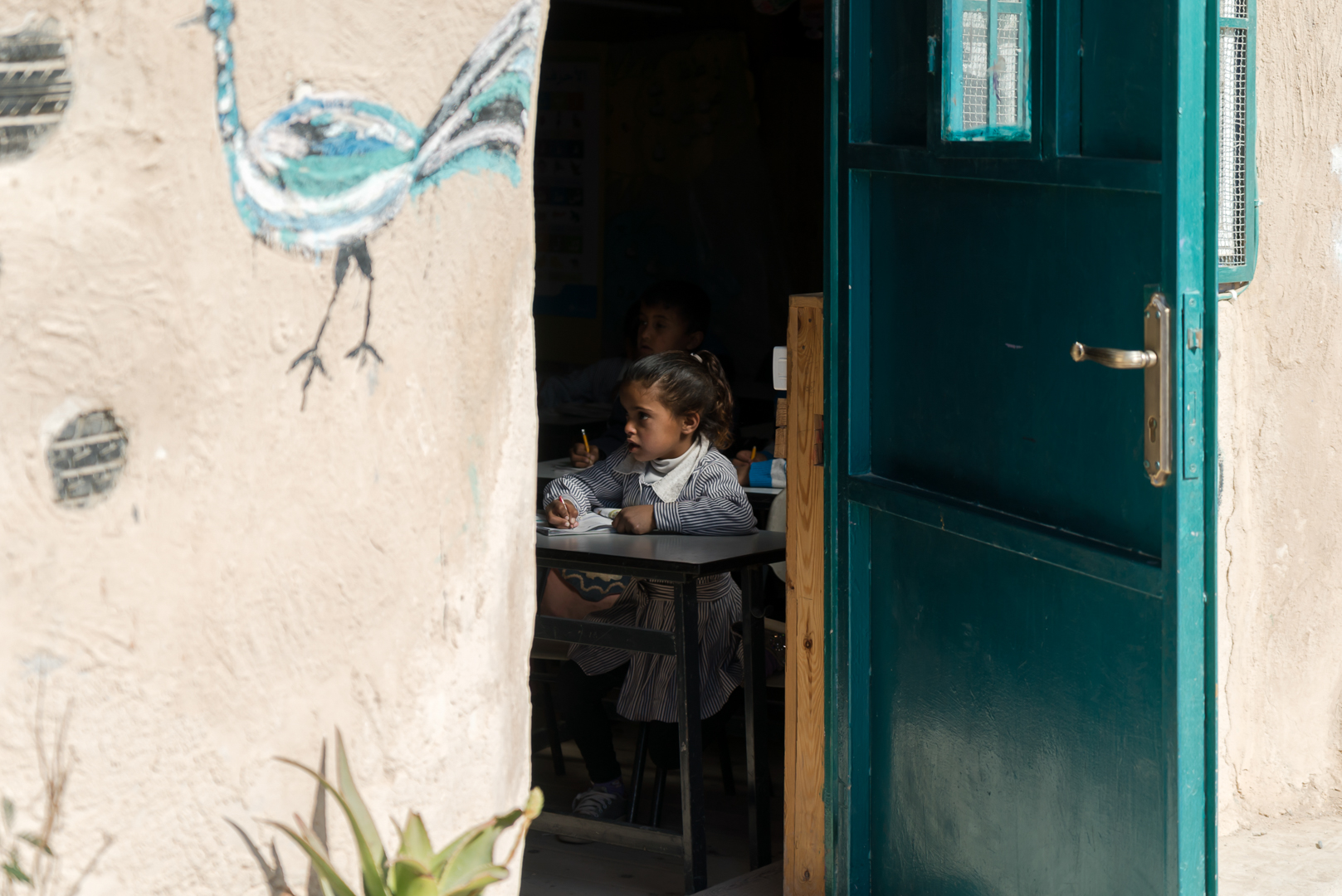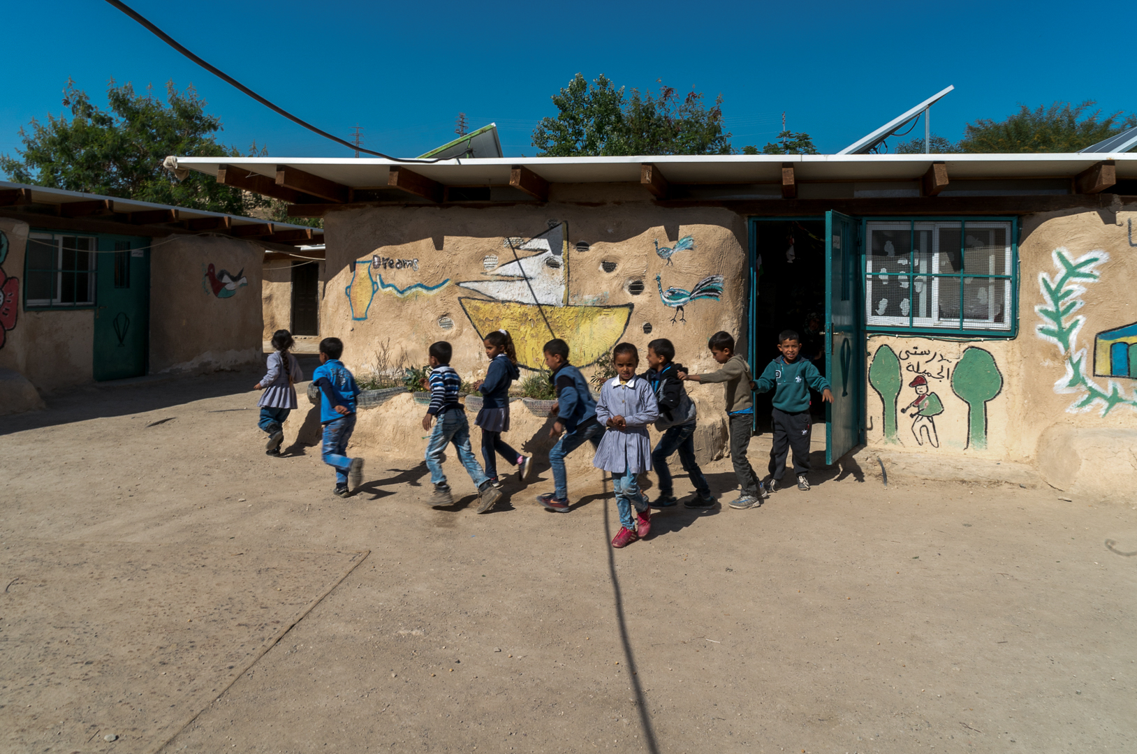 Al Khan Al Ahmar school is located in the desert beside the road to Jericho in the West Bank. It was designed by Italian architects and built together with the bedouin community. Constructed from recyclable materials—tyres and mud—it is an example of architectural ingenuity in the face of political instability, regional zoning restrictions and extreme conditions of the desert. In spite of such challenges, the school symbolises hope and promise for the children from a community struggling to preserve their identity.